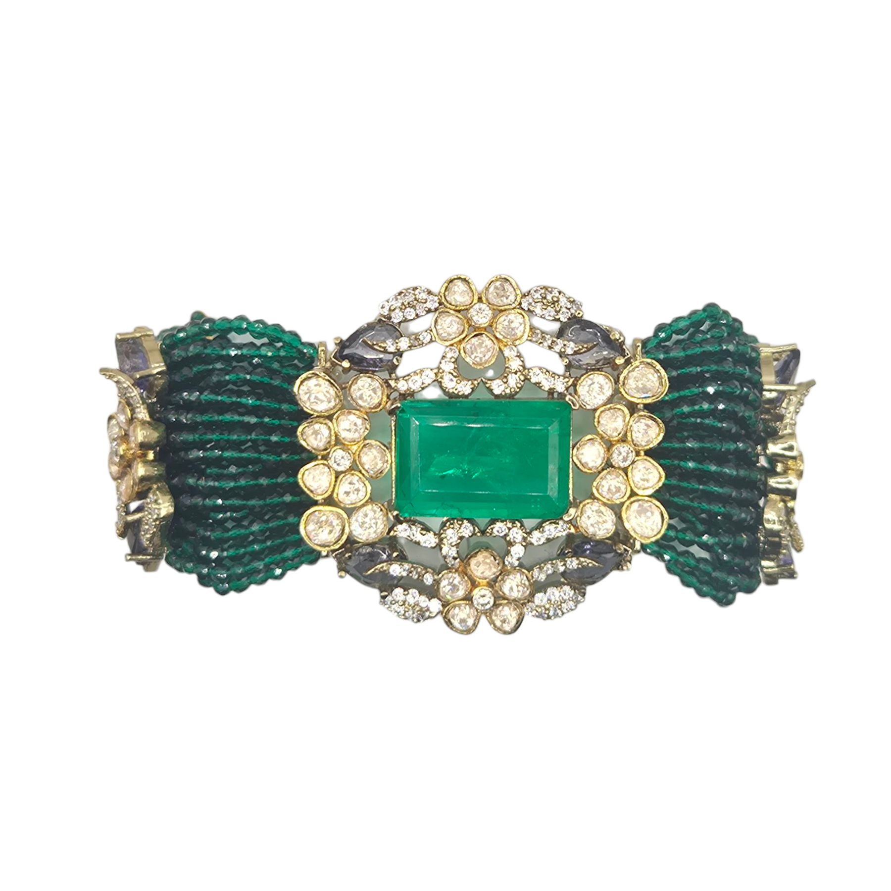 Vintage Styled Bracelet with Czech Beads and Kundan in Brass