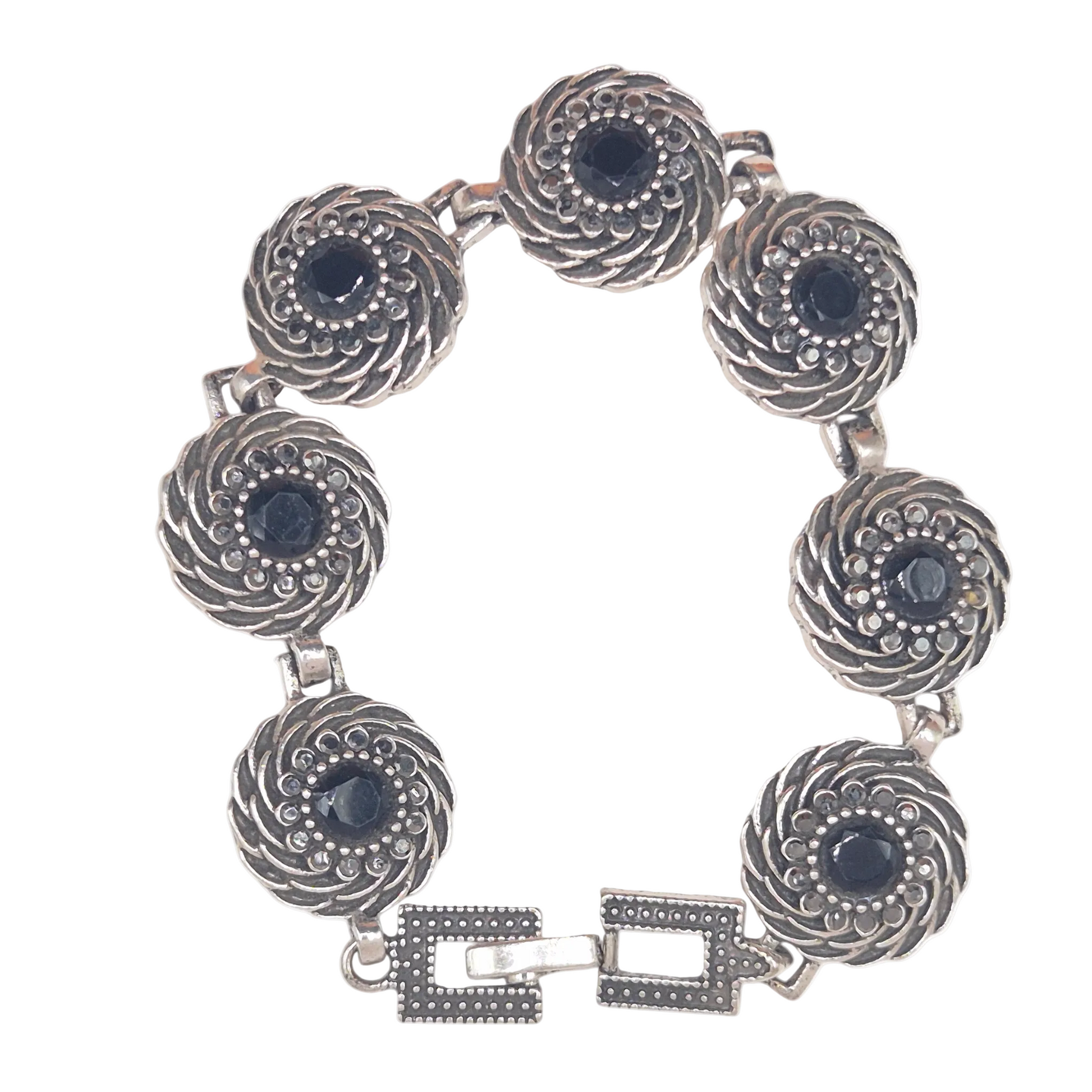 Black flower on spiral in brass