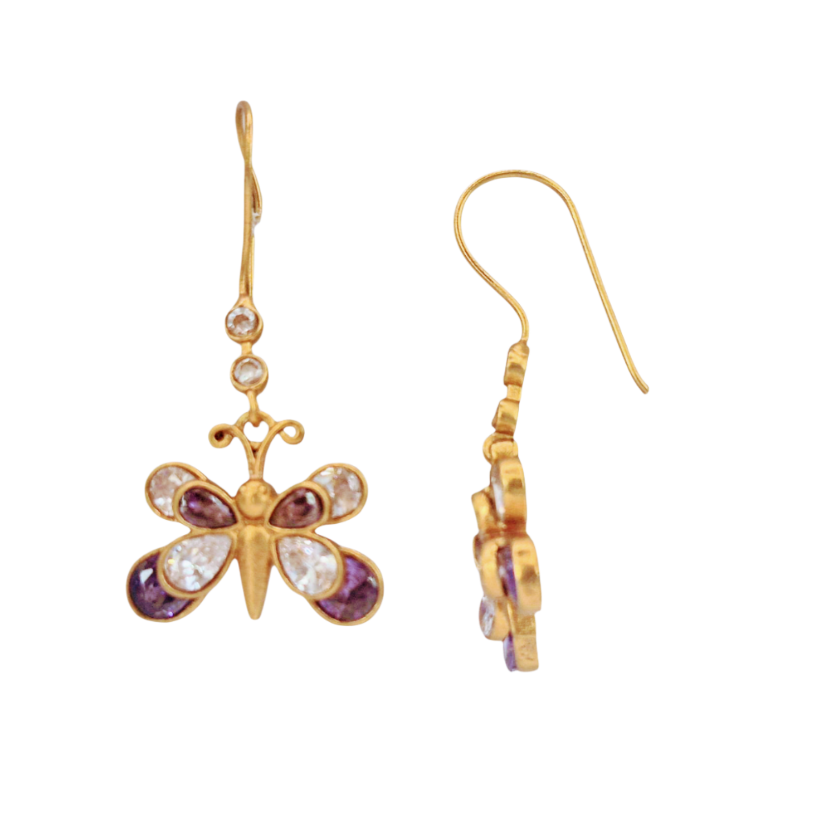 Butterfly earrings with quartz in brass