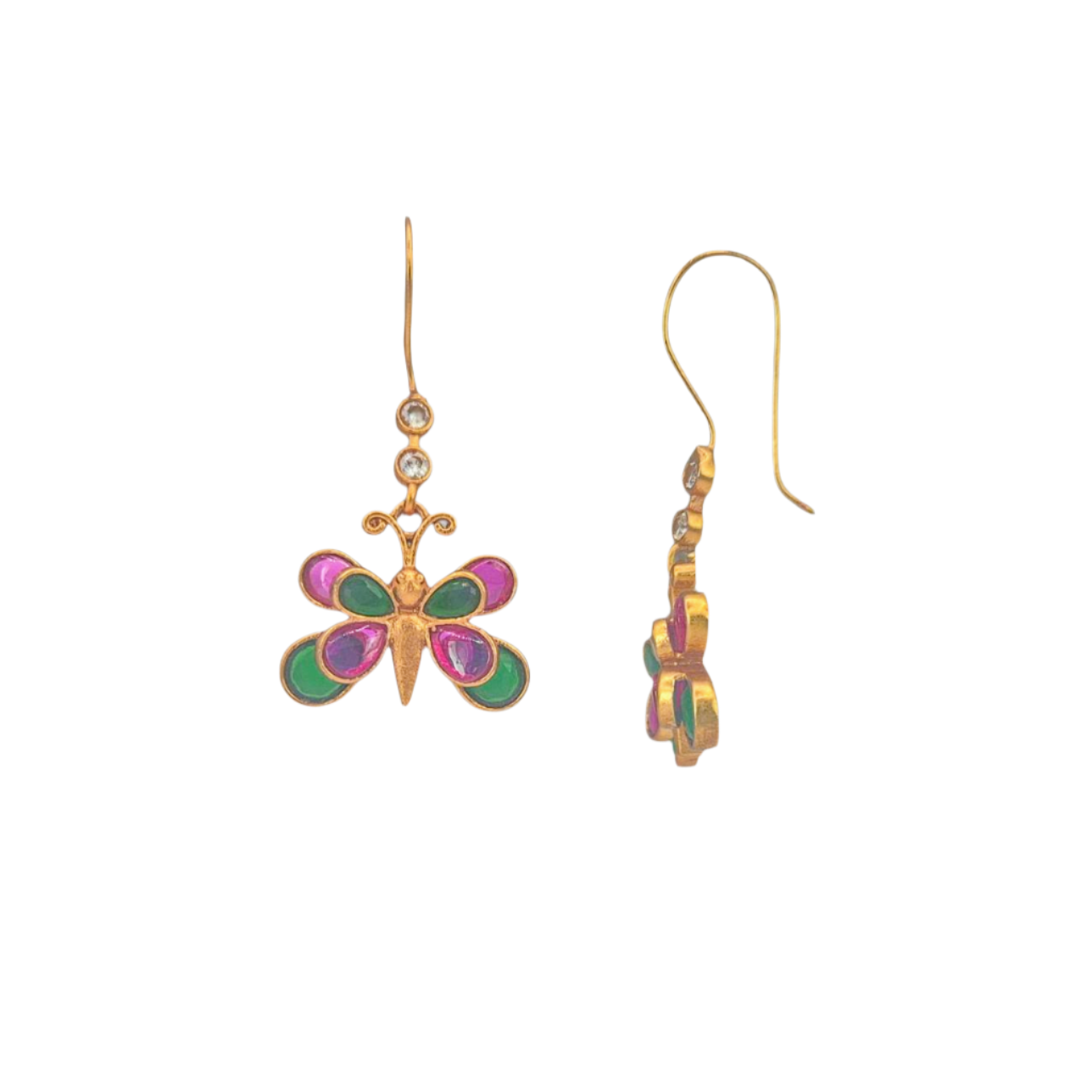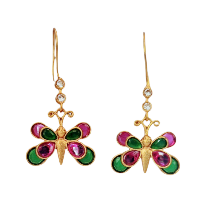 Butterfly earrings with quartz in brass