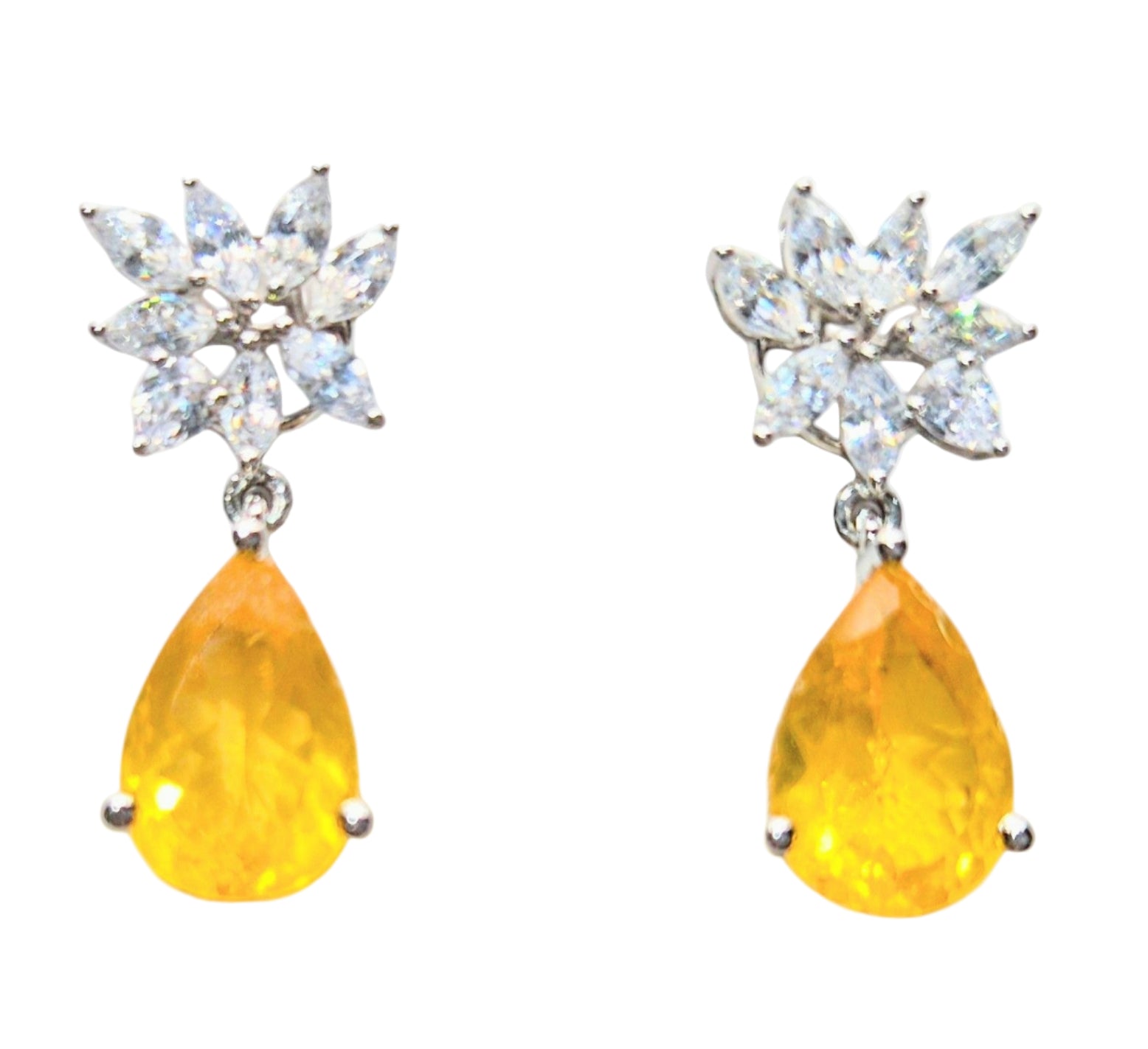 Golden Yellow drop with Marquis and pear cubic zirconia in 925 silver