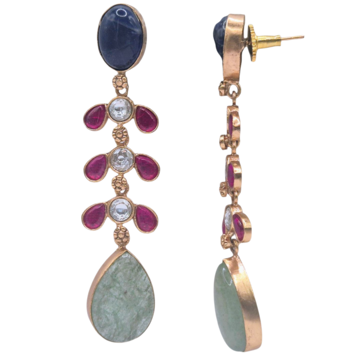 Lapiz Lazuli with Fuschia pink kundan and Aventurine gemstone set in brass
