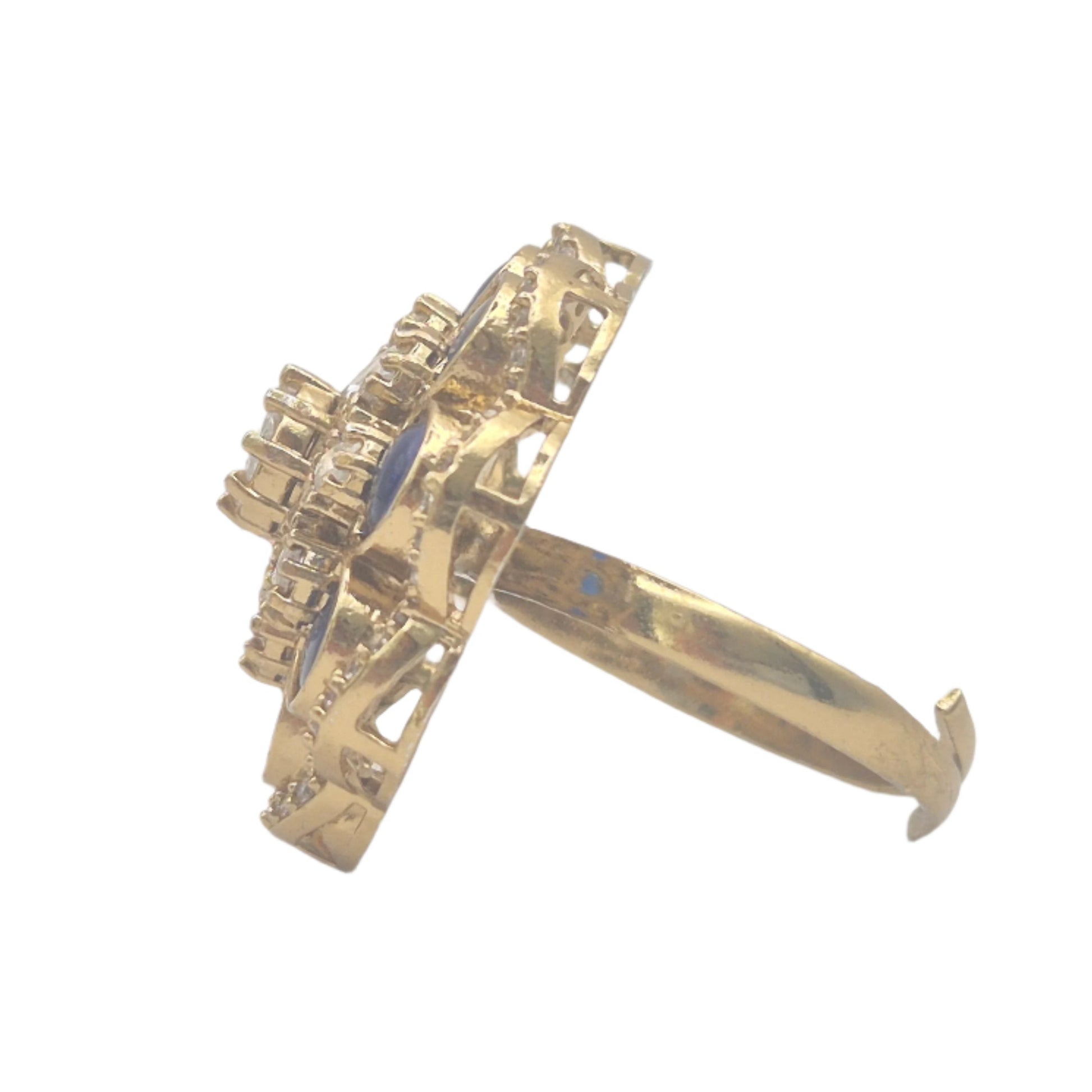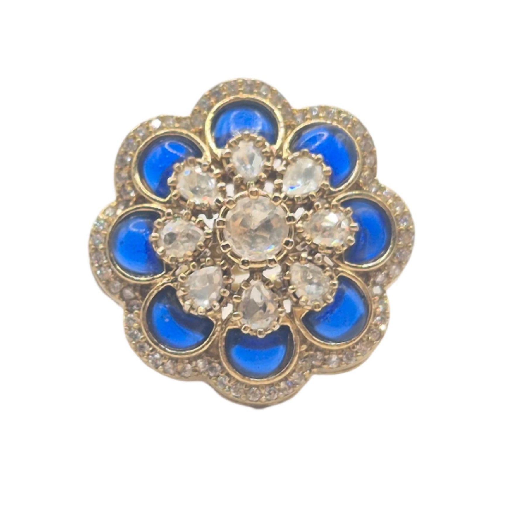 Blue semi-precious stones with moissanites in an adjustable brass ring