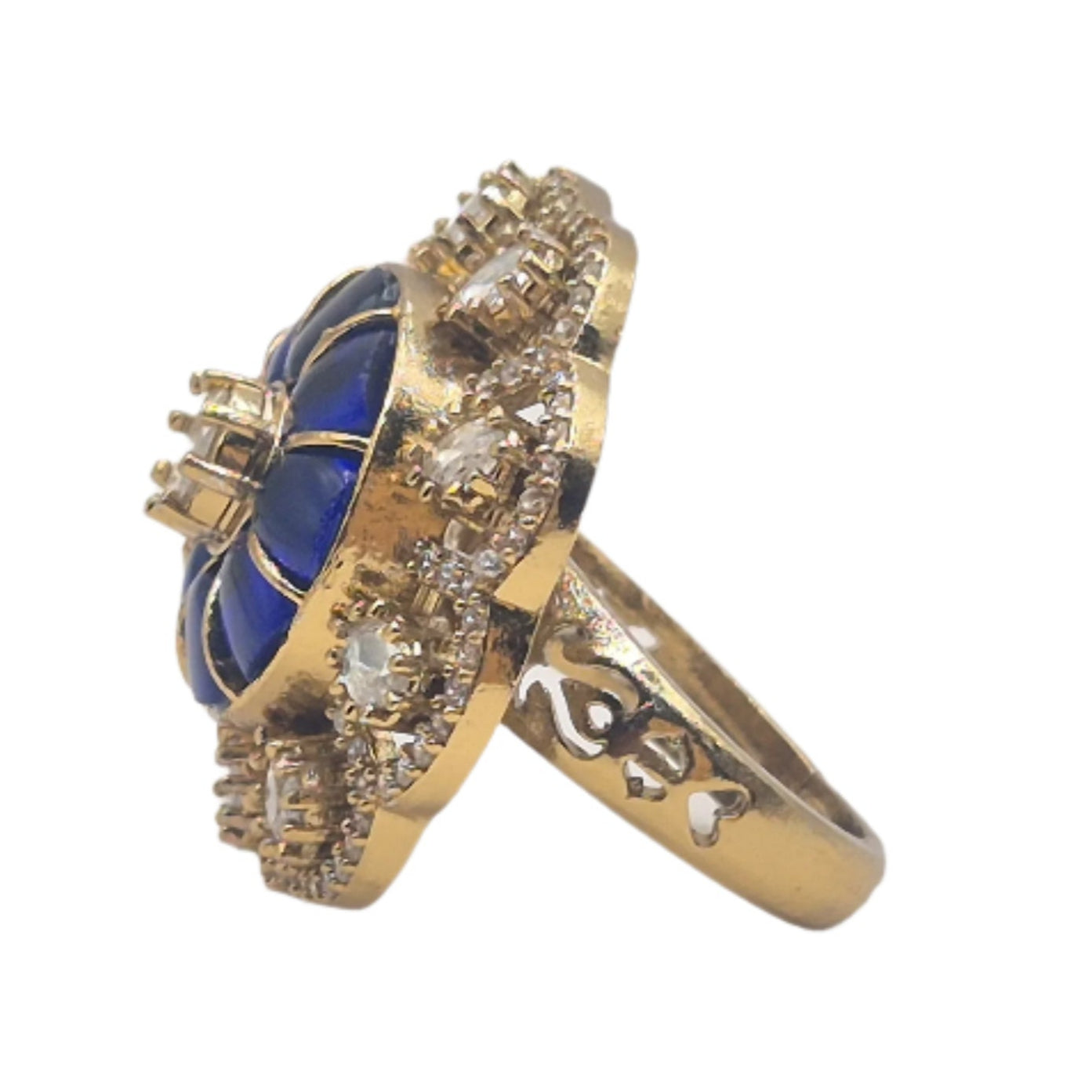 Blue semi precious stones with moissanites in an adjustable brass ring