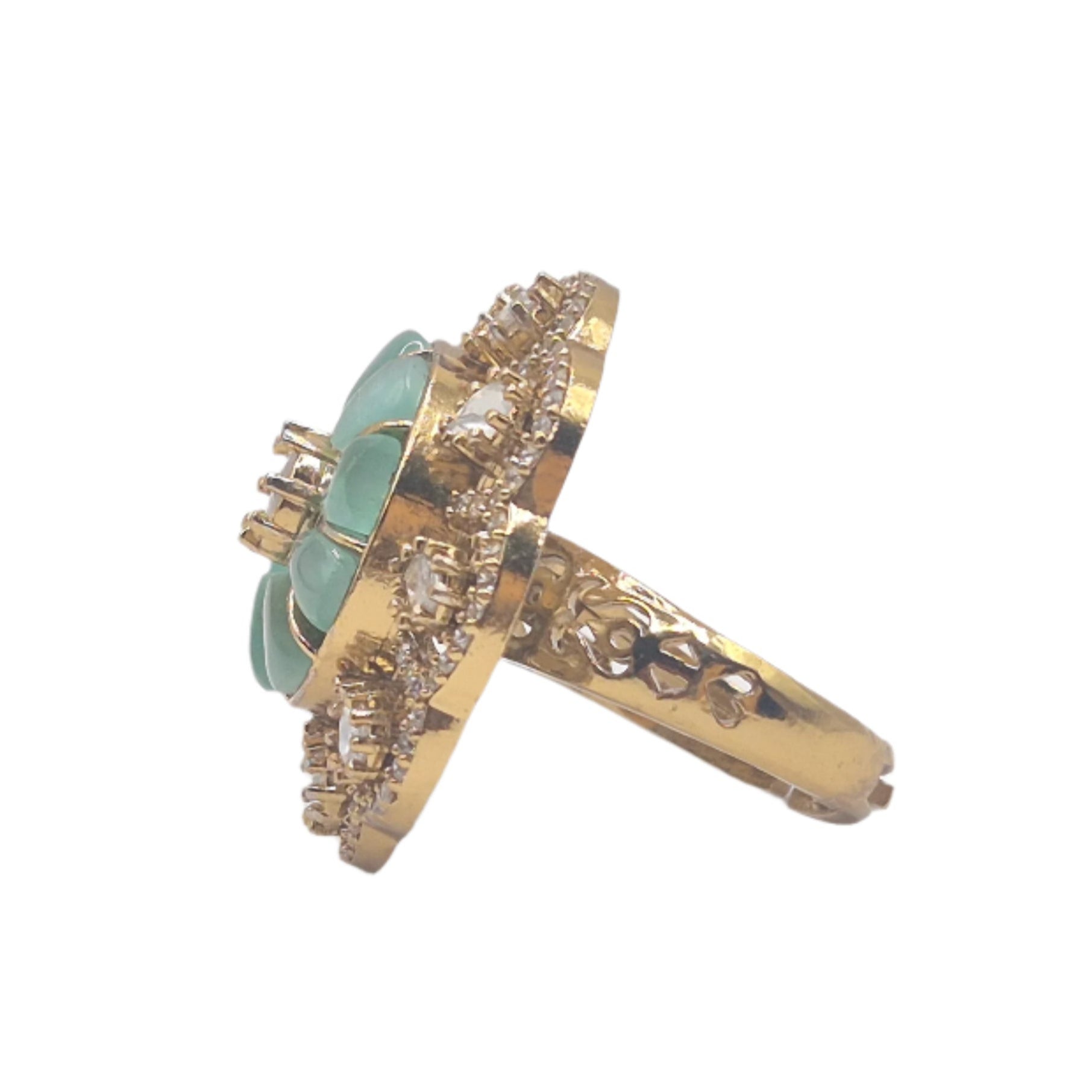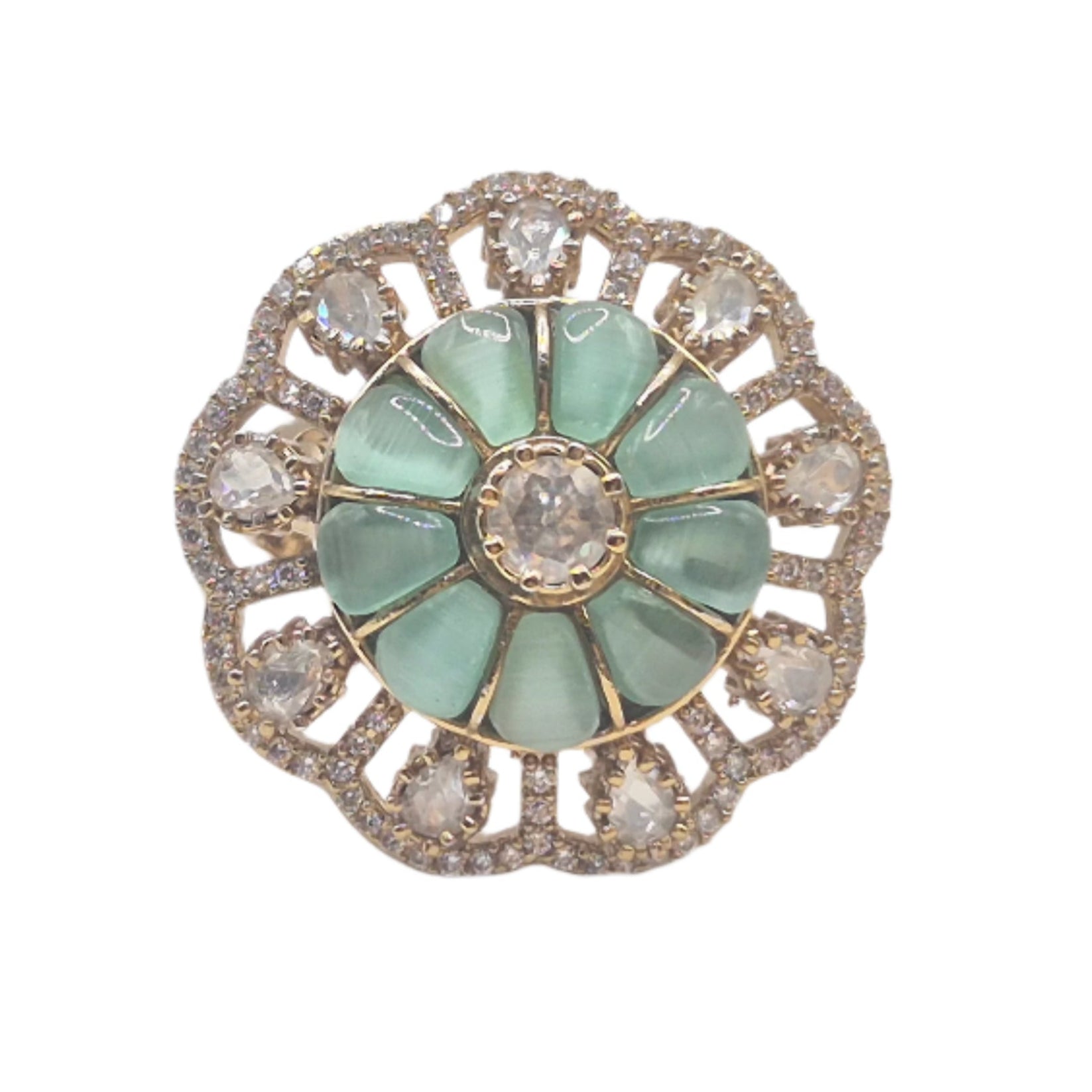Light Green semi precious stones with moissanite in an adjustable brass ring