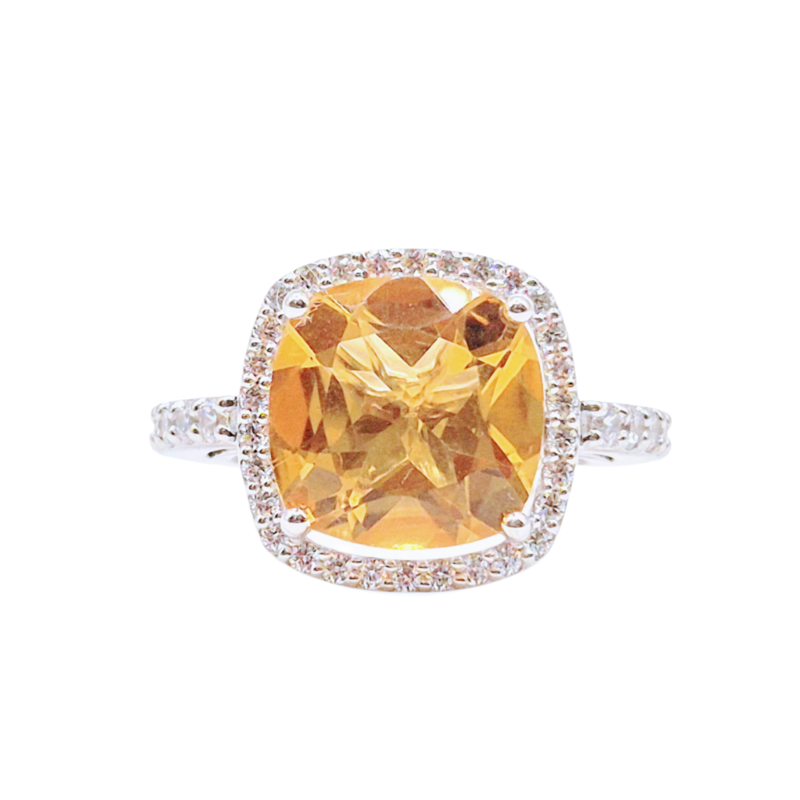 Citrine Cushion with Cubic Zirconias in 925 Silver