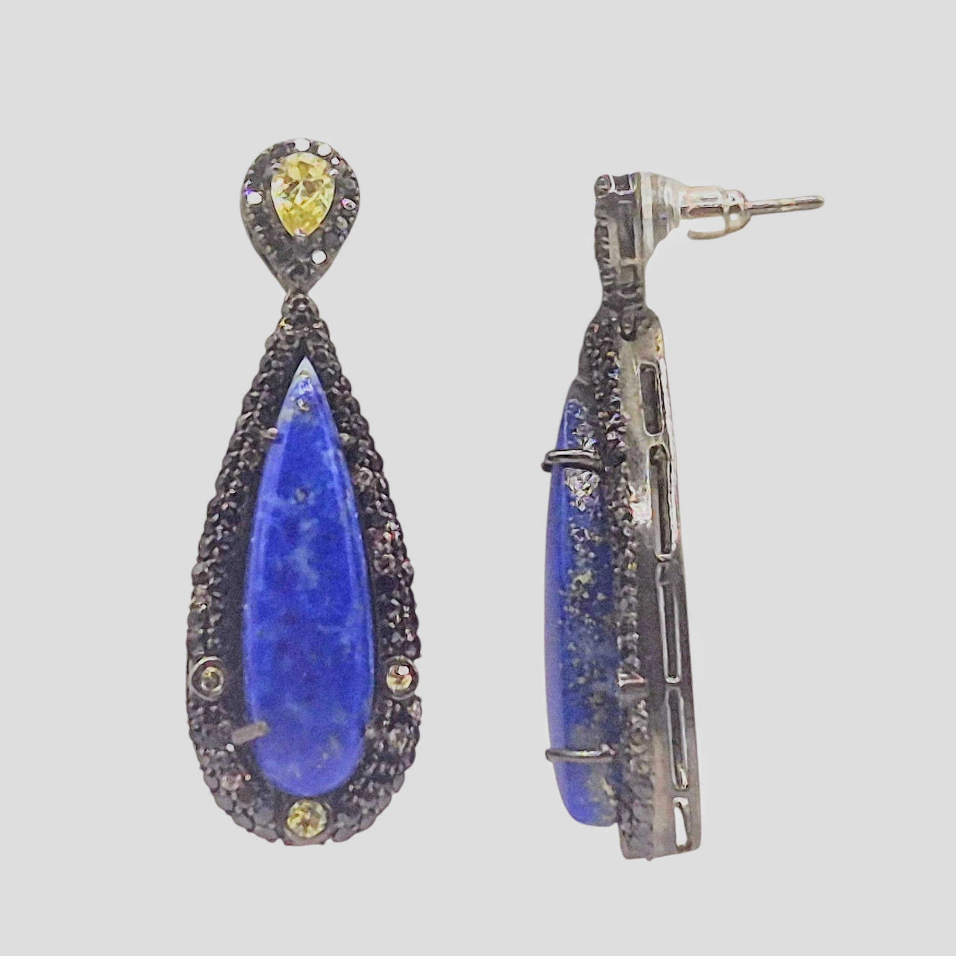 Natural Lapiz gemstone in a tear drop shape with marcasites and Zircons, set in 925 Silver
