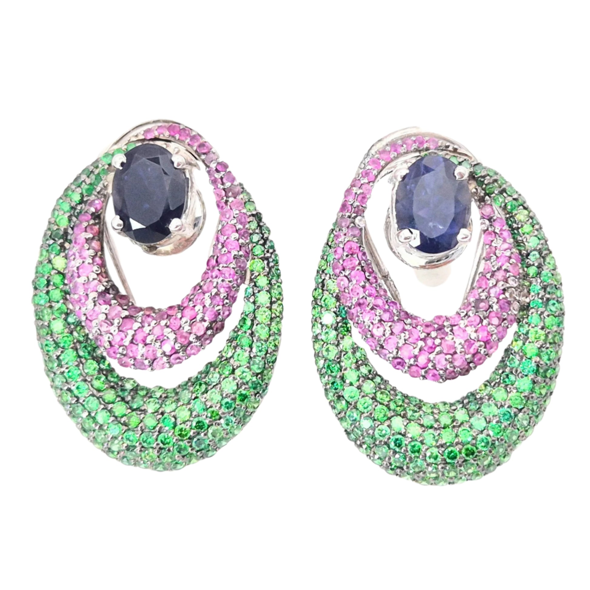 Natural Tsavorite with Rubies and Iolite gemstones make this fantabulous clip on earring in 925 Silver