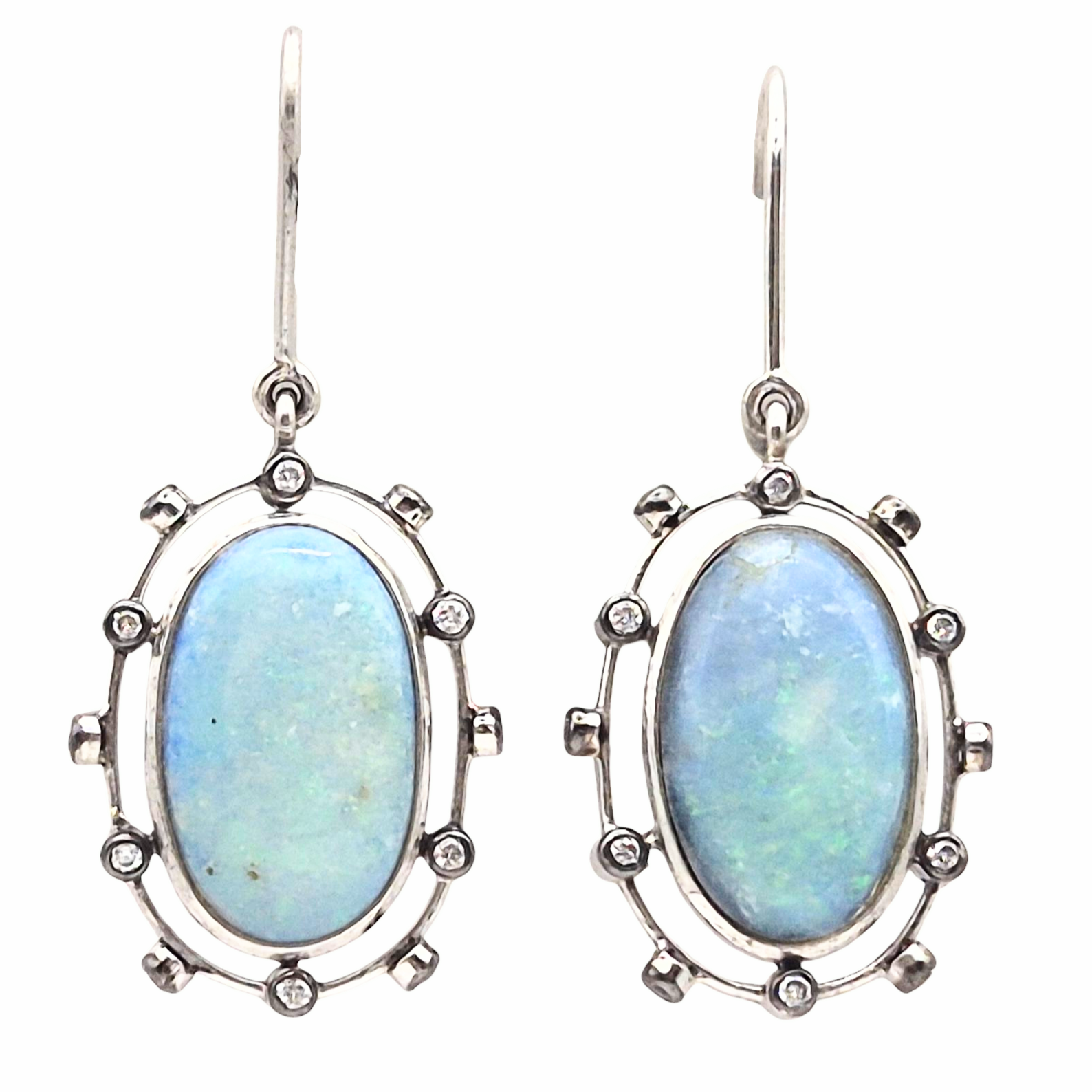 Natural Australian Opal displaying a play of colours with Zircons in 925 Silver, black plating