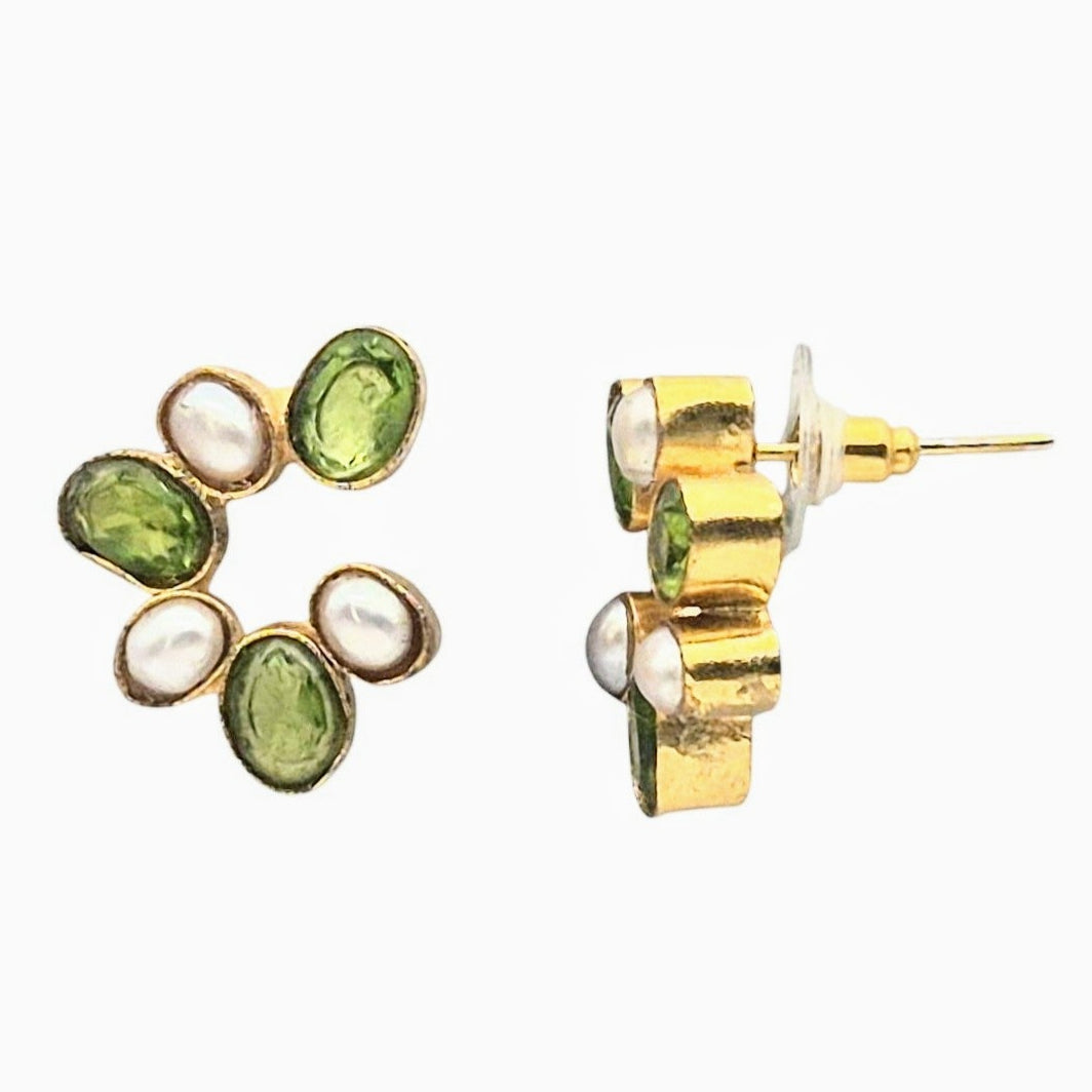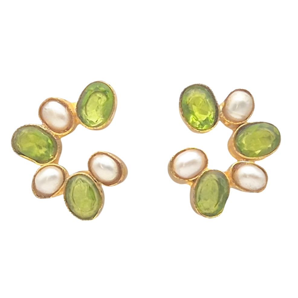 Green Quartz and Natural Pearls set in brass