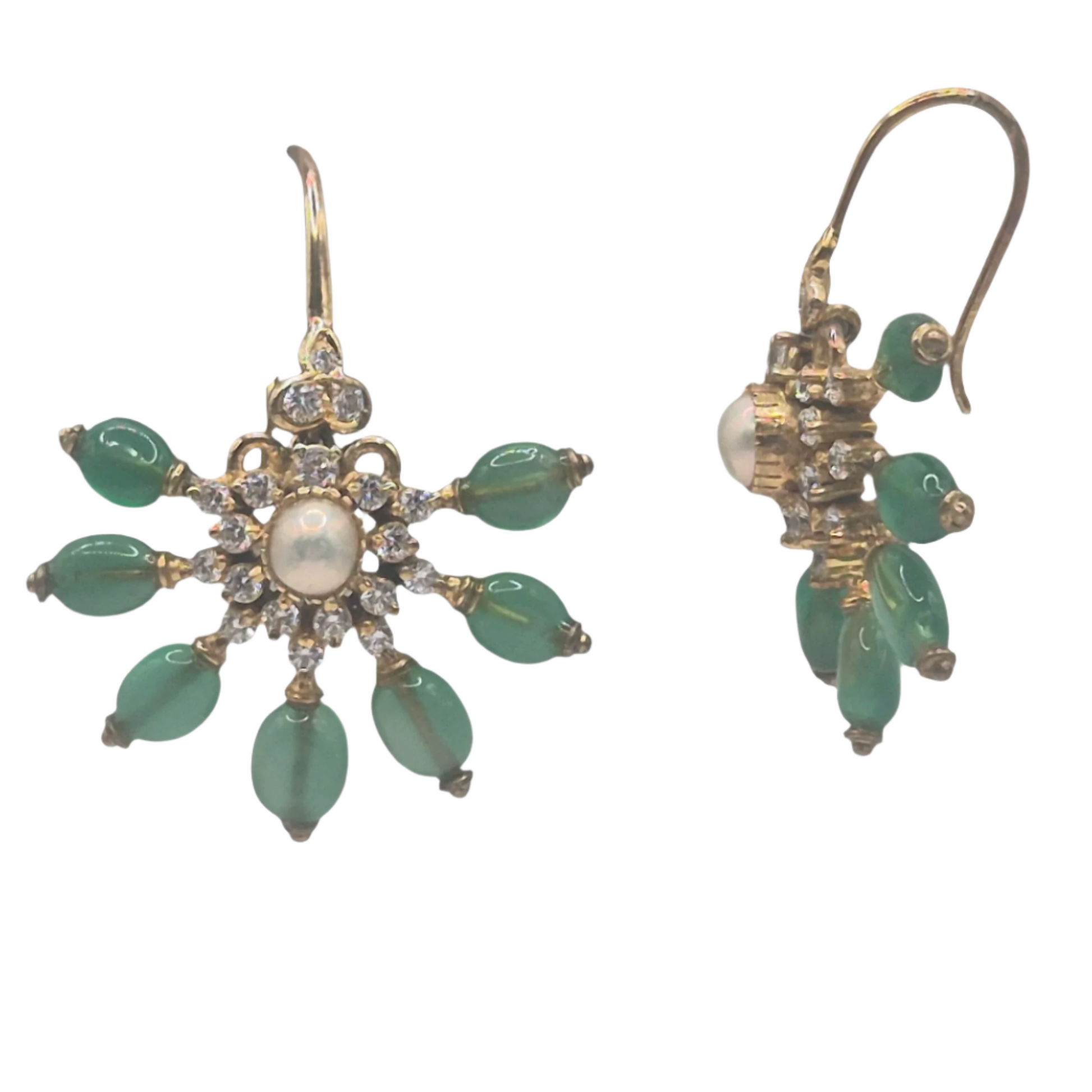 Natural Green Onyx gemstone and Pearl wit Cubic Zirconias in 925 Silver, makes this semi chandelier earrings