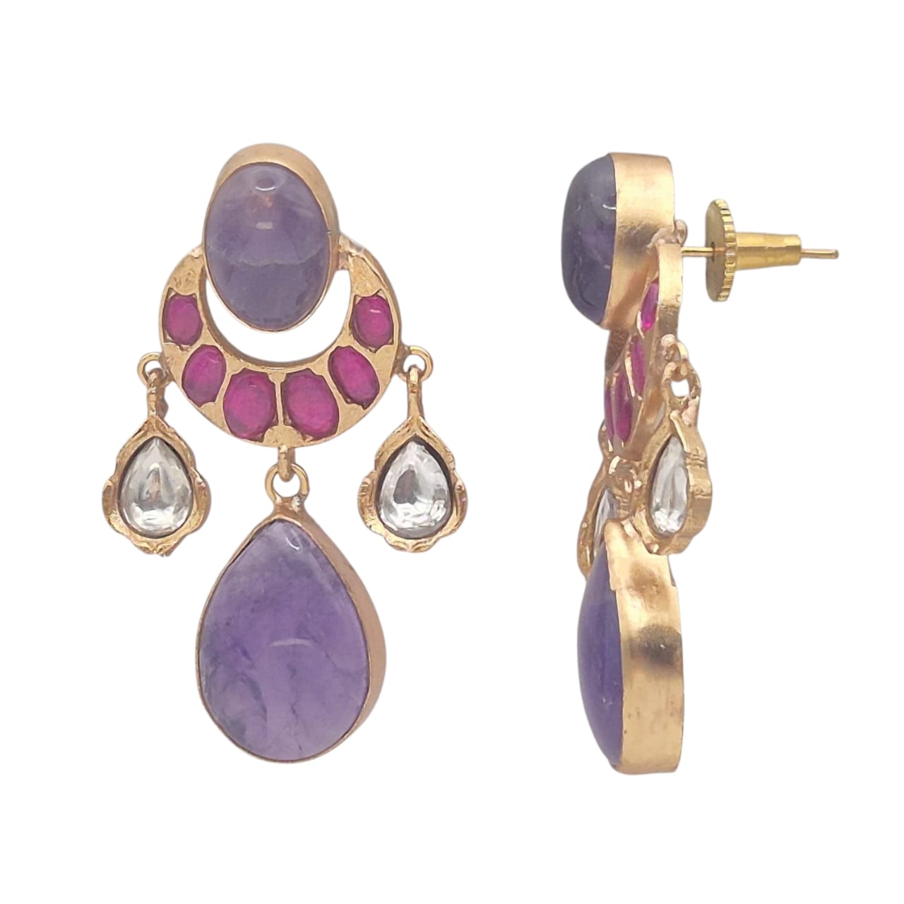 Amethyst set with fuscia pink quartz in brass with lifelong gold plaing