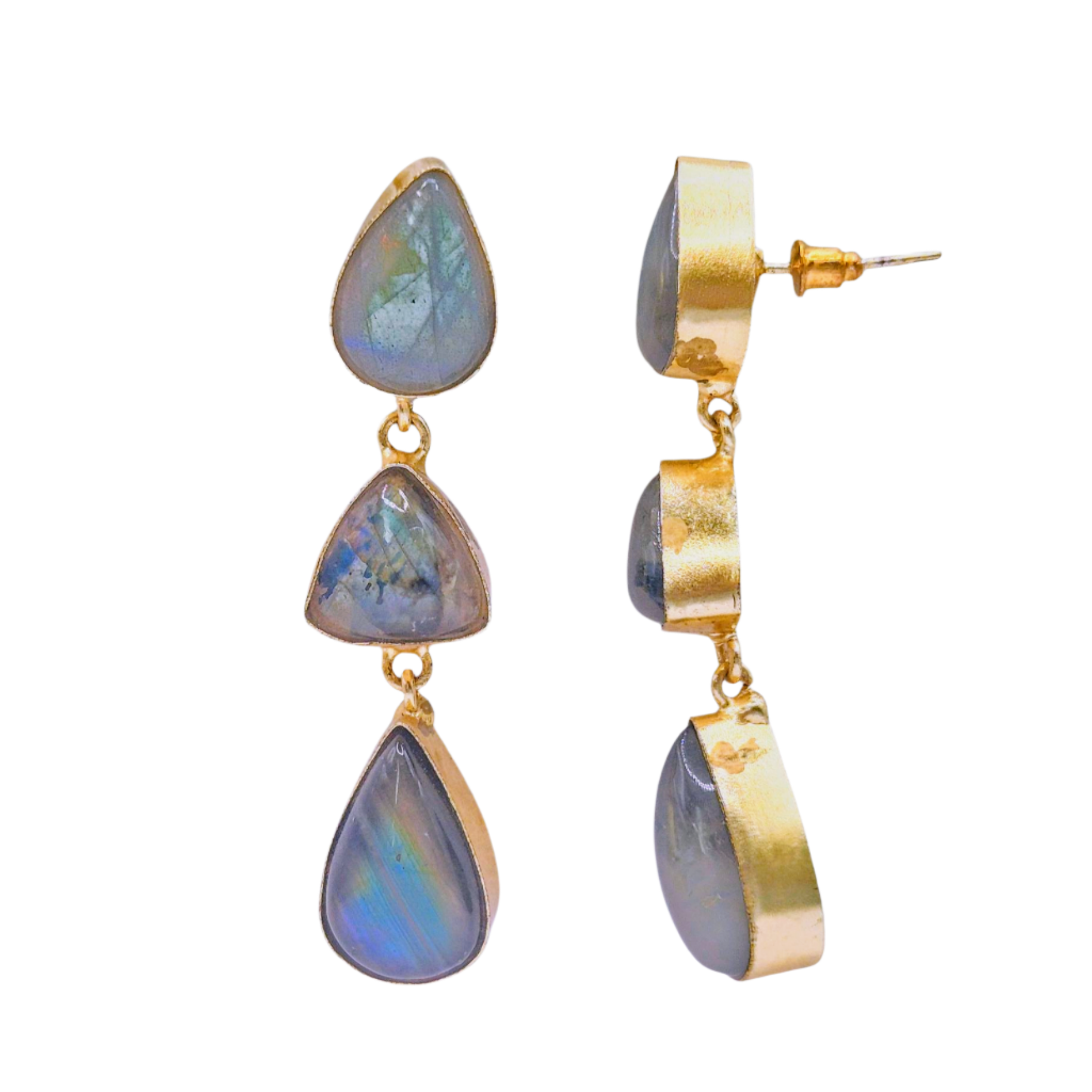 Natural Labradorite gemstone set in brass