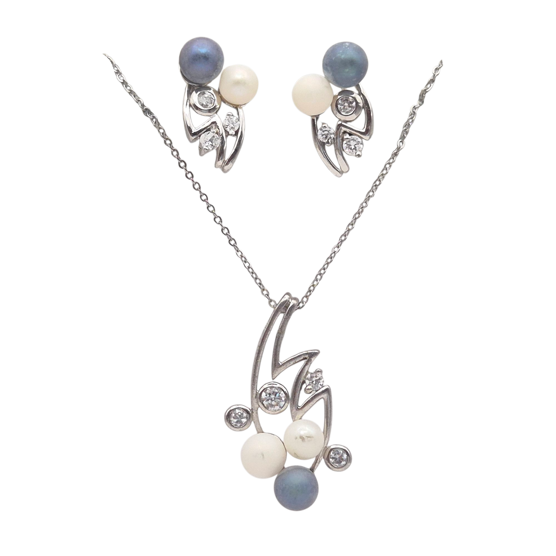 Natural white and tahitian Pearls set in cubic zirconia in 925 silver