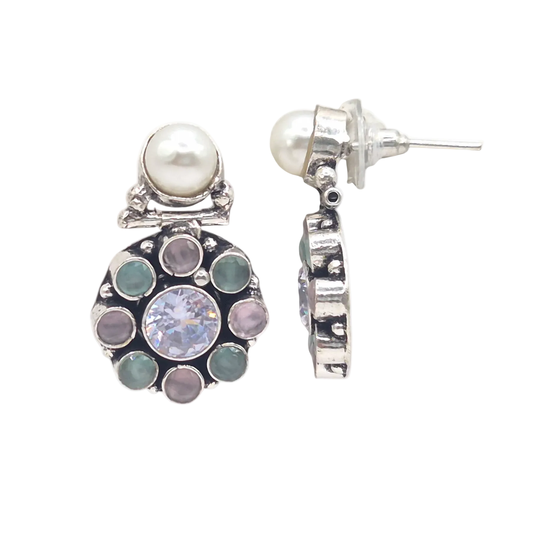 Pastel Pink and Green Zircon with White Pearl Set in brass