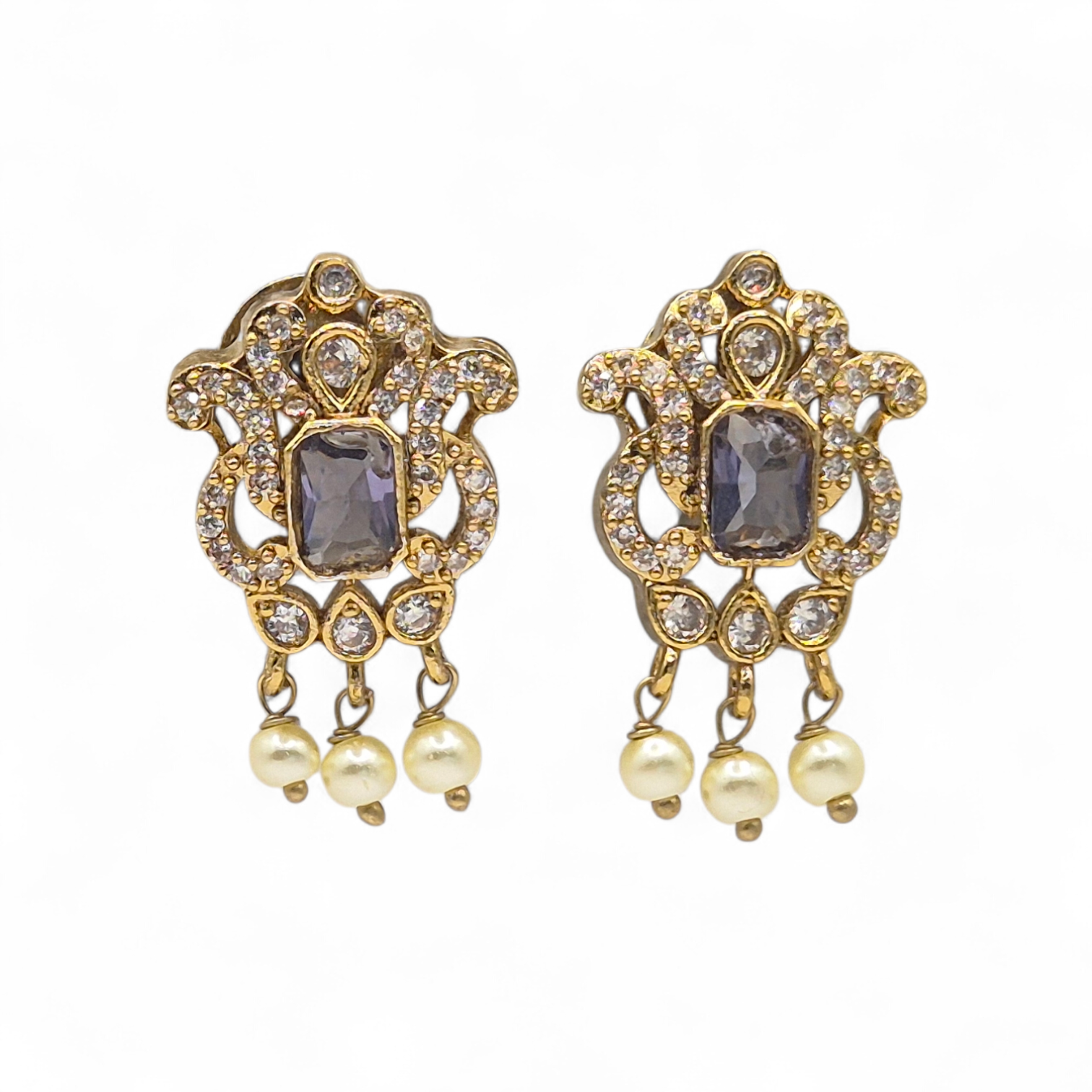 Purple Quartz with CZ and Pearls in Brass