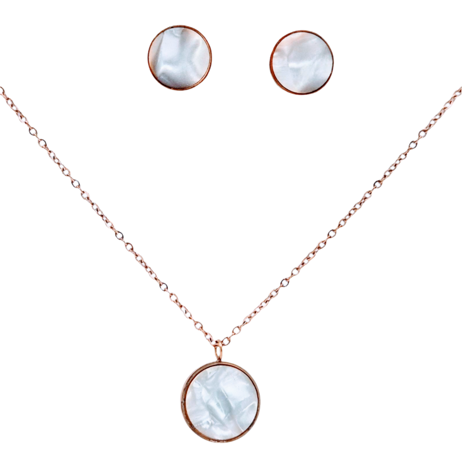 Simple yet elegant circle design with White Mother of Pearl in Pink Plating