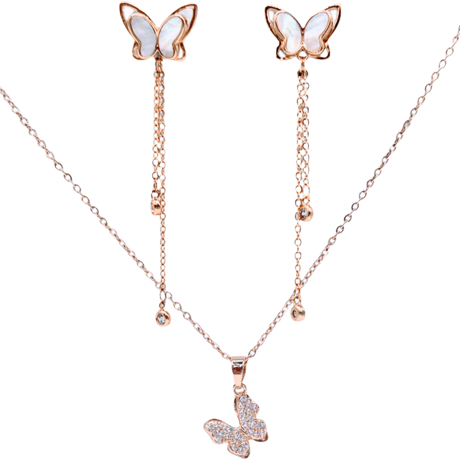 Delicate Butterfly designed with Crystals and White Mother Of Pearl in Yellow Plating