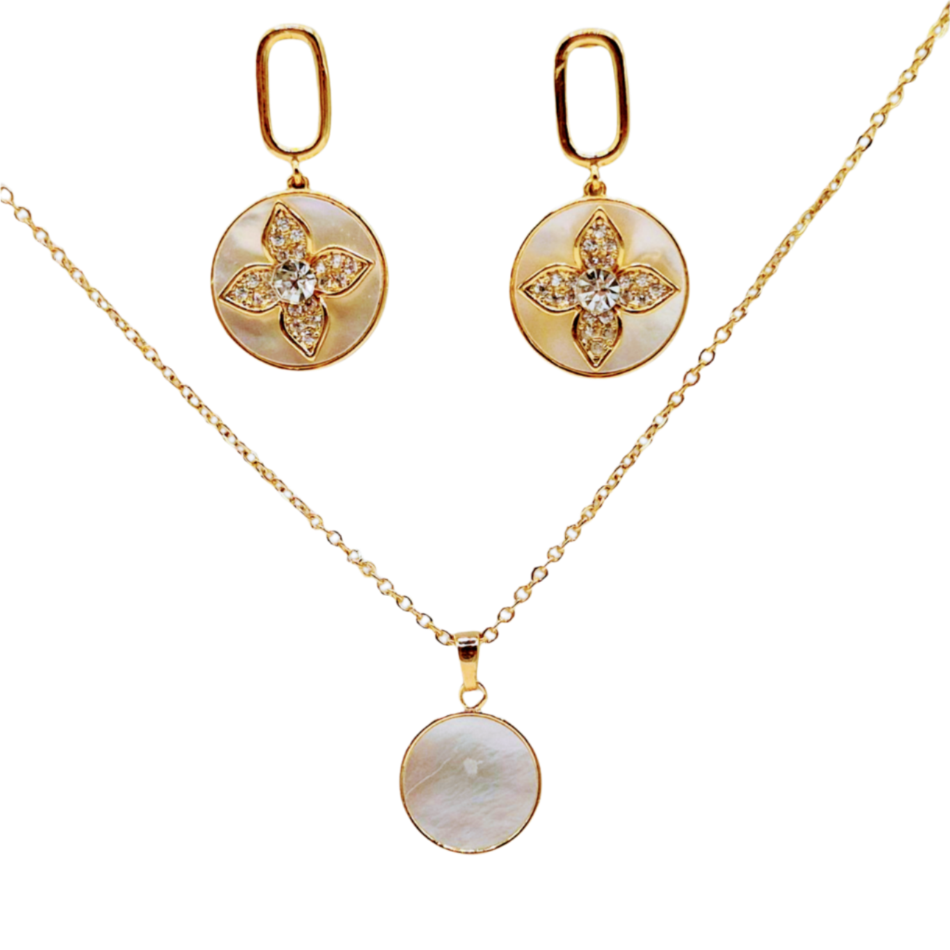 White MOP with Flower in Yellow Plating