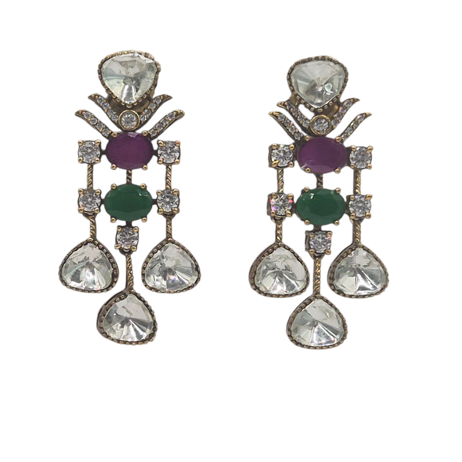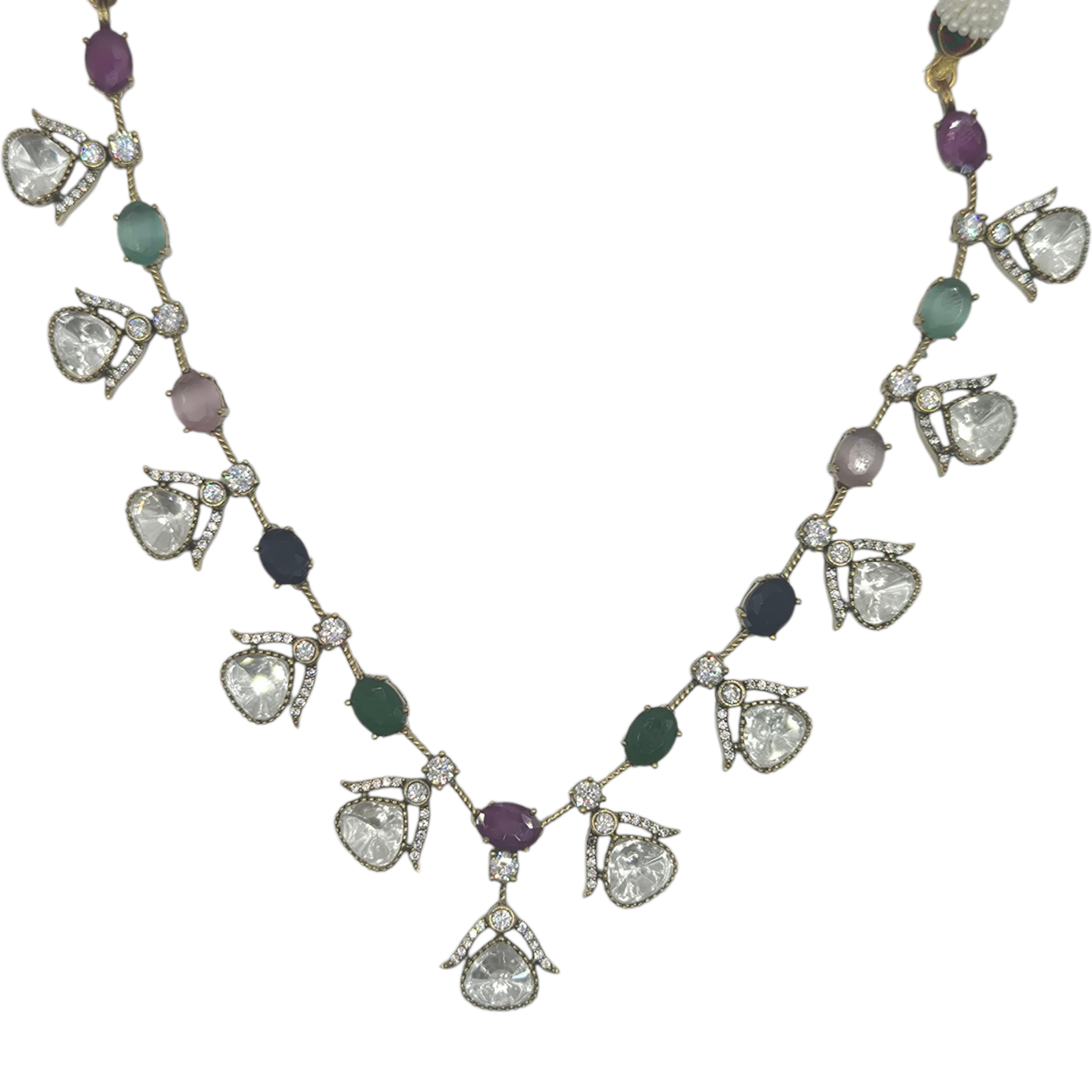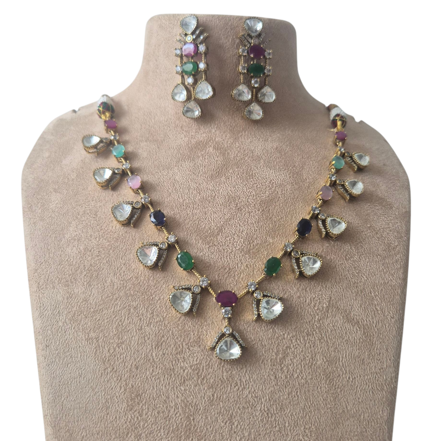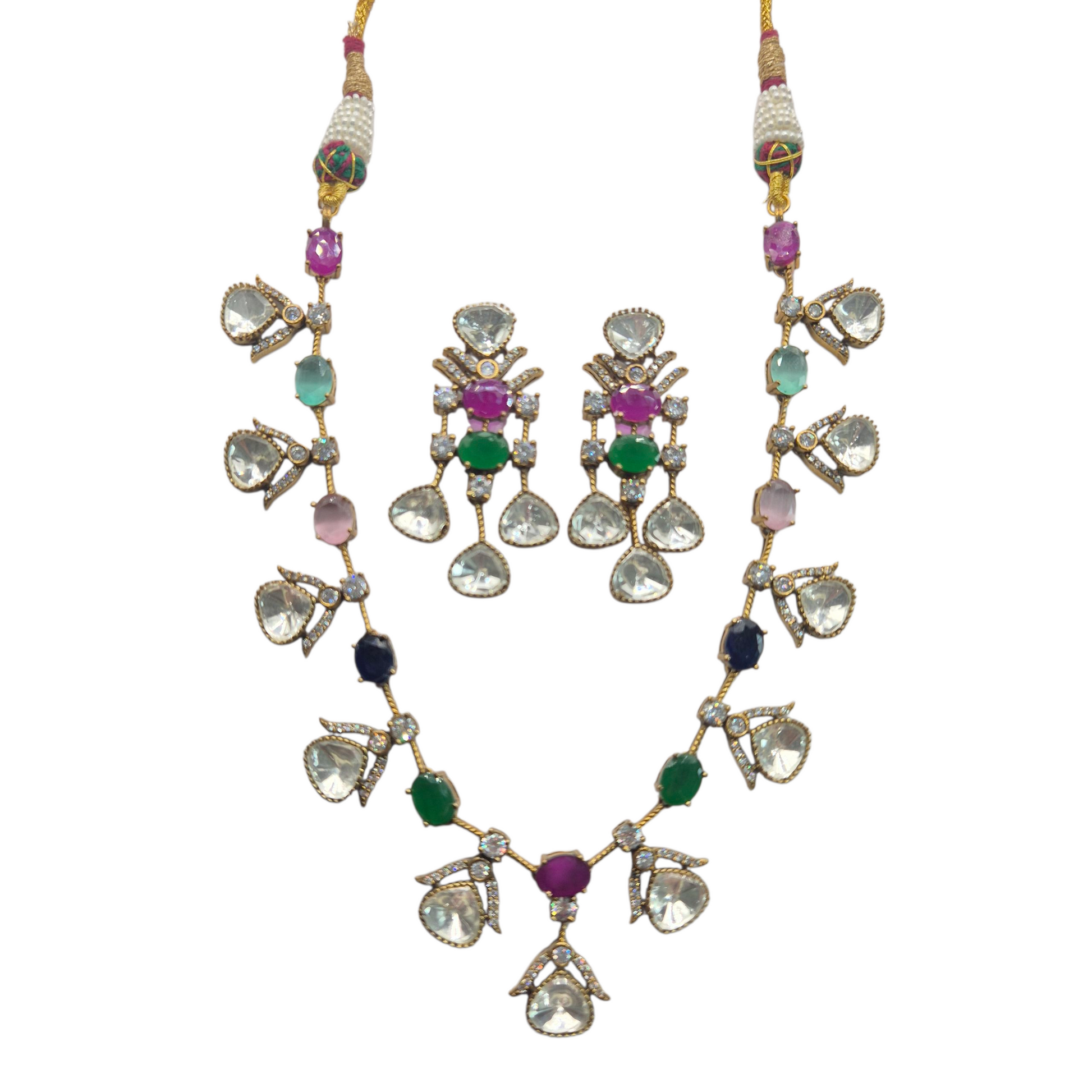 Vintage necklace set made with multi-coloured quartz and lustrous moissanites